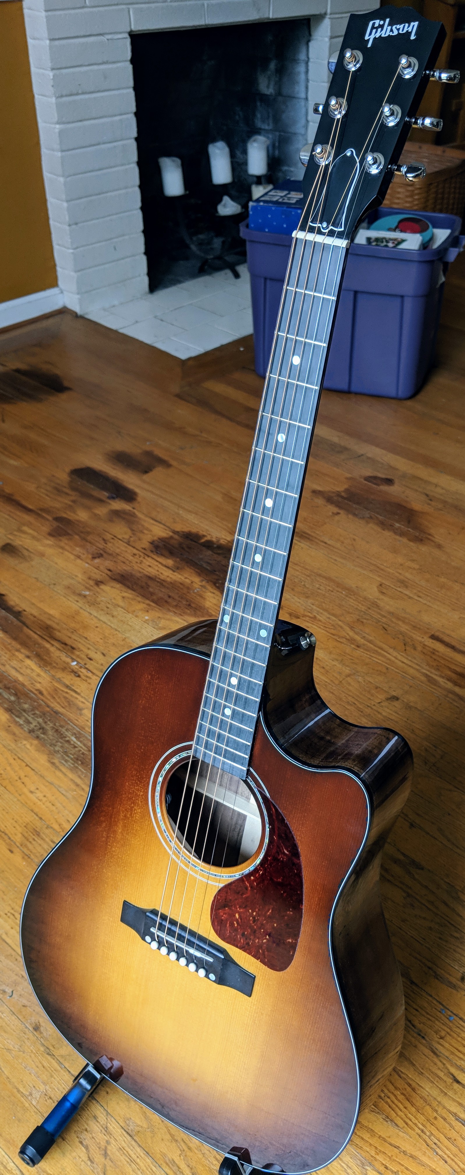 Today that resolution came to pass. I just received a 2019 J-45 Avant Garde Walnut Burst. It is SO cool that I’m close to speechless, so I’ll just share some photos I took before I even tuned it up and played it.