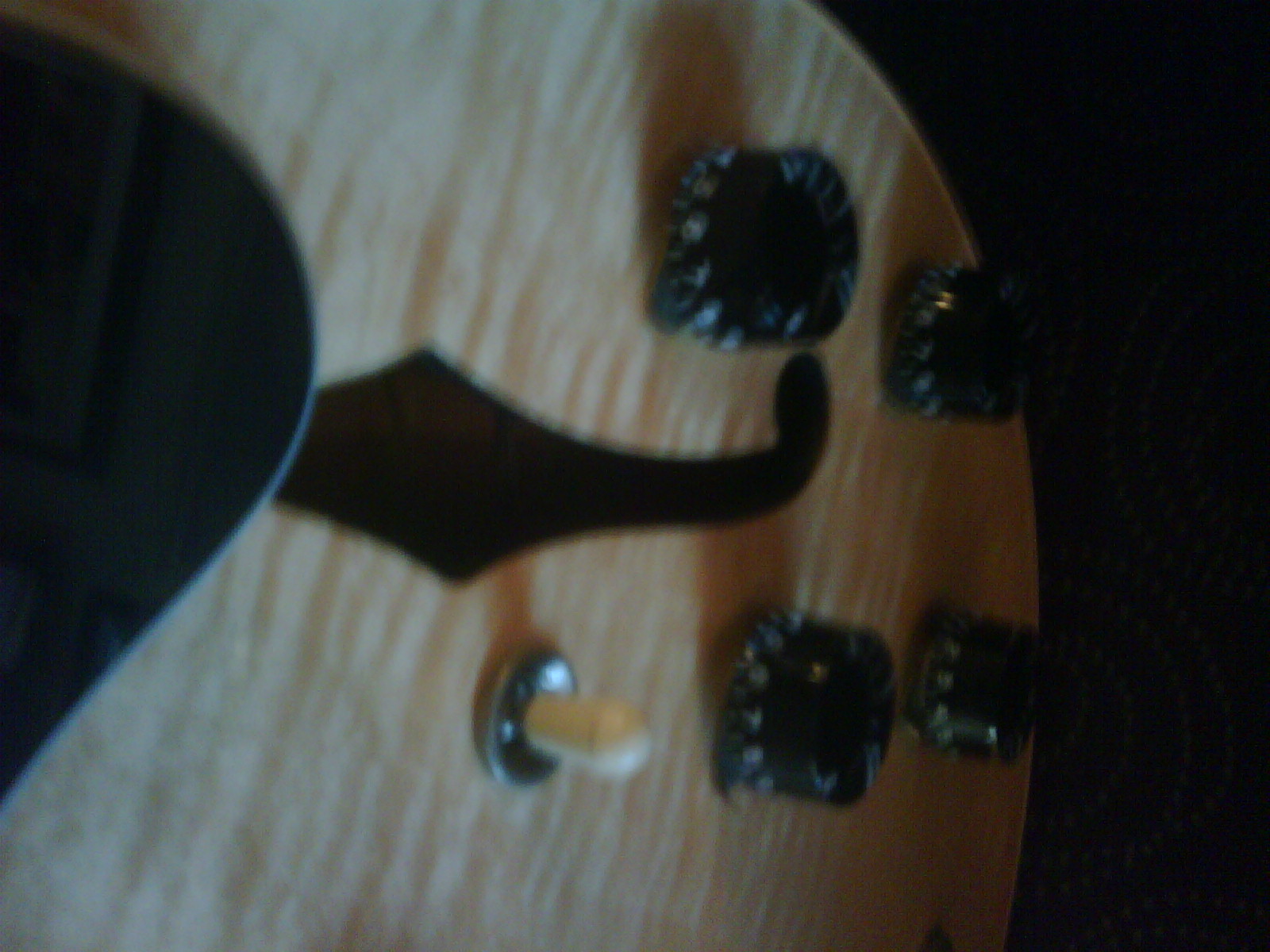 The bridge pickup is bright as to be expected – perhaps a bit too bright – but the wonderful tone knob nicely takes the edge off the brightness. I did notice that the bridge pickup is not significantly louder than the neck pickup, which leads me to believe that the original owner lowered the height of that pickup. When I get home from vacation, I’m going to raise it a bit because I prefer to have that dramatic change in volume.