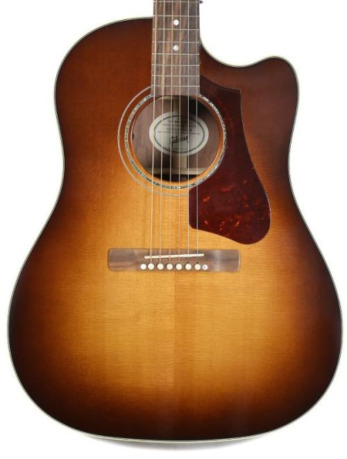 Summary: This has all the classic, balanced mojo of a J-45, but in a thinner, “jumbo” body. And though some might consider it heresy that it’s a cutaway, having reasonably easy access to the upper frets makes it so nice for playing solos.