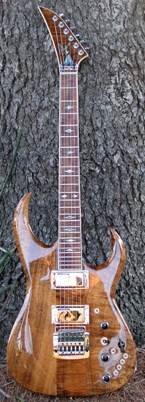 And based upon the Bich, you have an idea of the style of guitars Neal designs. Most are pointy, very aggressive-looking guitars. Even his more traditionally-styled guitars have a decidedly edgy look to them. But that’s not a bad thing at all. In fact, Neal’s guitars have a very pleasing vibe about them. I look at Neal’s guitars, and the first thing I think of is that these guitars are meant to be played through a fully cranked amp. You’d be doing a disservice to the guitar if you didn’t let it breathe fire. π