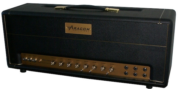 “The ARACOM PLX100 amplifier is a platform that allows us to build customer specific amplifiers with the features and specifications they desire. For this custom build, our customer wanted a 100 watt amplifier with the vintage Marshall Super PA look. The Super PA head cabinet has a “wide mouth” front panel opening, allowing access to four separate P.A. channels. The model designation for this custom ARACOM amplifier is” Super H.T”., H.T. representing the initials of our customer. However, instead of having 4 identical channels like a standard Super PA amplifier, the Super H.T. has 3 different channels, allowing for a highly versatile amplifier.